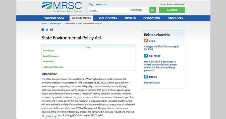 Mrsc.org is now a responsive website built on a robust content model and a flexible content management platform. Content can be re-used and displayed in a variety of formats, lifting the burden of a MRSC’s research and writing staff from the more menial tasks of web content management so they can focus on their real mission: helping governments govern better.